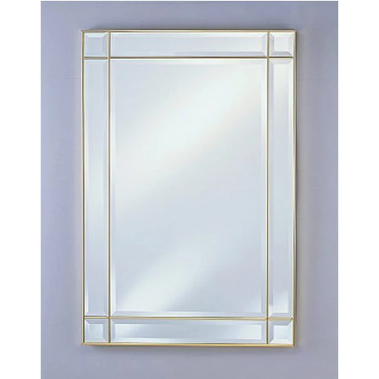 The polished brass finish on this Rectangular Wall Mirror by Afina brings a beautiful look to your bathroom. With a 1″ bevel, this mirror is frameless and has a window style leaded bevel. It comes with an eyelet hook mounted on back of mirror and can be hung vertical or horizontal.