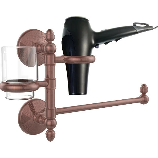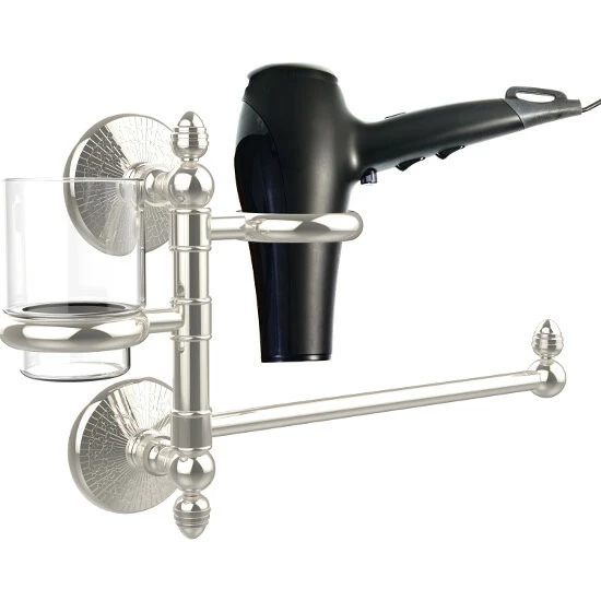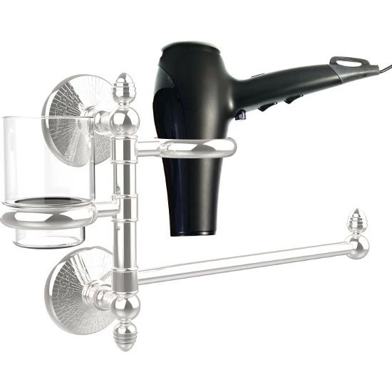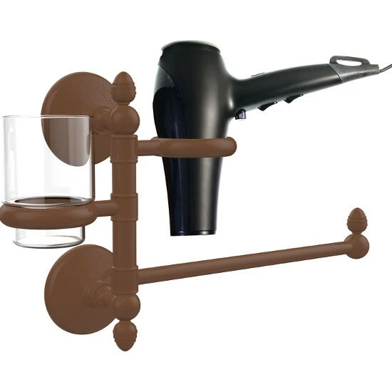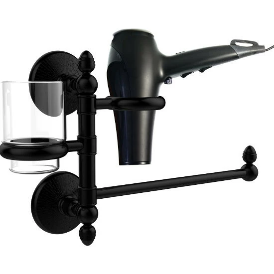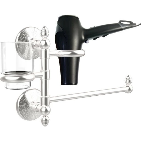 This three arm multi-use bar is the best organizational addition to your bathroom! With limited space and an clean bathroom countertop in mind, we created a 3 tier bar that is able to securely hold your important and most used items that tend to clutter the bathroom and/or vanity. Great for hair dryer, tumbler, soap dish or any combination of items that will fit in the accessory ring.