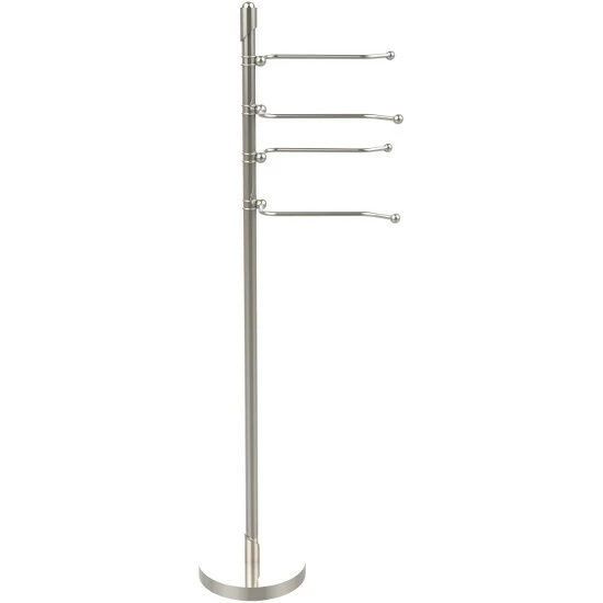 Ideal for vanity countertops, this Soho 4-Swing Arm Towel Stand by Allied Brass can be placed in your bathroom for easy access to towels after washing your hands. Available in various finishes in standard or premium colors, this stand is manufactured in the USA and is constructed of solid brass. The parts are forged instead of cast or stamped, making this towel stand sturdy and strong for as long as needed. The stand is hand-polished to achieve the highest possible polish.
