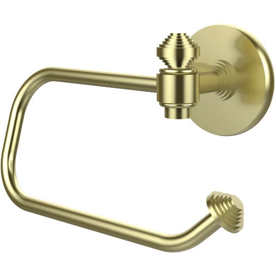 Sleek and modern looking, this Southbeach Euro Tissue Holder by Allied Brass is the perfect addition to any bathroom. With its smooth holder, there is no excuse to not put a new toilet paper roll onto this wall-mounted fixture. Choose from a variety of finishes that enable you to match the rest of the décor in your bathroom, with your choice of polished brass, polished chrome, antique brass, antique bronze, antique copper, oil-rubbed bronze, antique pewter, polished nickel, satin brass, satin chrome, satin nickel and venetian bronze finishes.