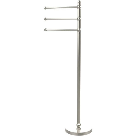 This elegantly designed free standing swing arm towel stand provides a convenient and stylish space to hang your favorite towels. Towel stand has 4 pivoting arms so that you can maximize your space. Large base is weighted to help prevent tipping. Towel stand is made of the finest solid brass materials so that it will not rust or corrode and is provided with one of our designer lifetime finishes.