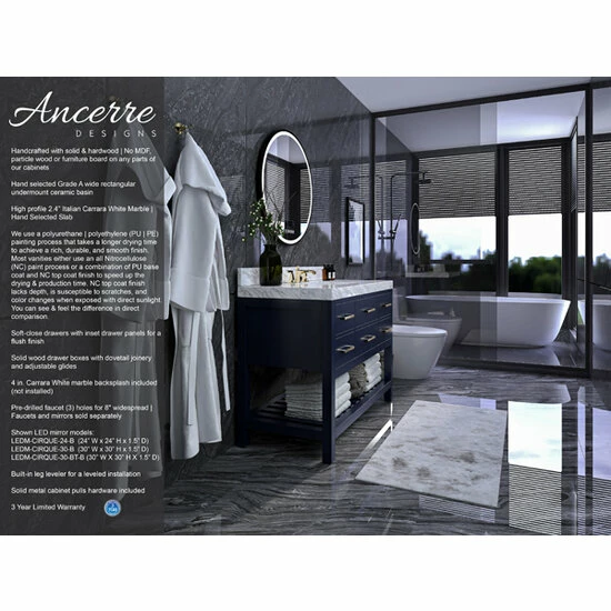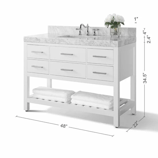 Quality wood to paired with the most durable soft-close hardware make a perfect bathroom vanity combination. No details were overlooked in crafting this 48” vanity set as the sleek and clean lines prove to be a center piece of your bathroom. The Elizabeth collection by Ancerre Designs is a pure transitional design that brings balance and harmony to any space.