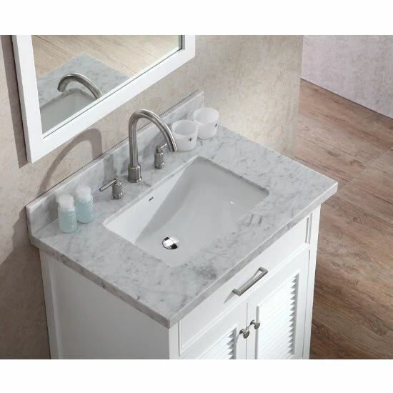 - Countertop Type: Carrara White Marble Countertop with 1-1/2″ Edge and Backsplash