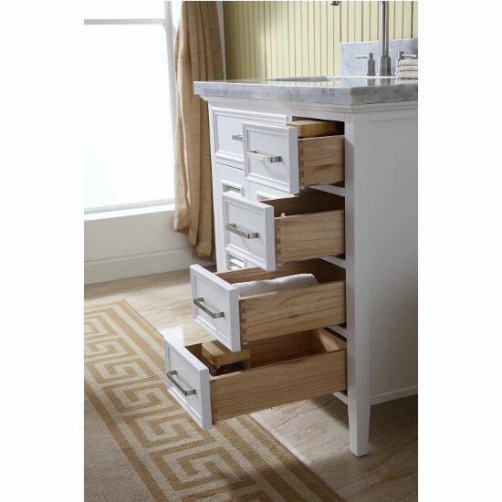 - Countertop Type: Carrara White Marble Countertop with 1-1/2″ Edge and Backsplash