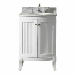 Virtu USA Khaleesi 24″ Single Round Sink Bathroom Vanity Set With Italian Carrara Marble Top