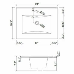 Nameeks Built In Or Wall Mounted Ceramic Washbasin With Overflow, 23-3/5″ W X 13-4/5″ D, White