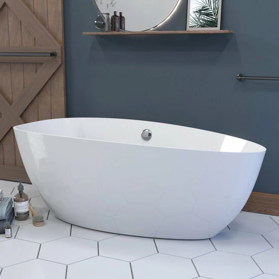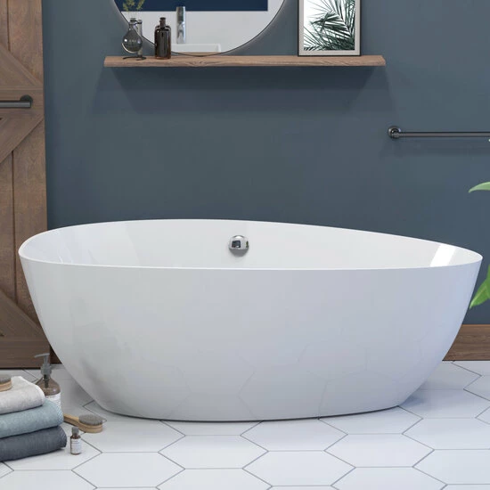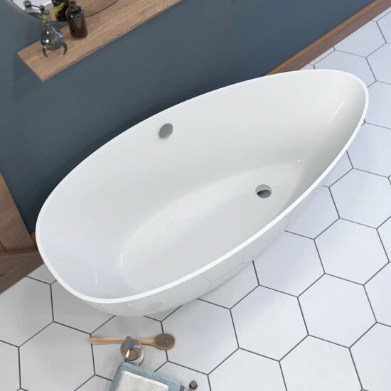 - 62″ Engineered Stone Free Standing Double Ended Oval Soaking Tub