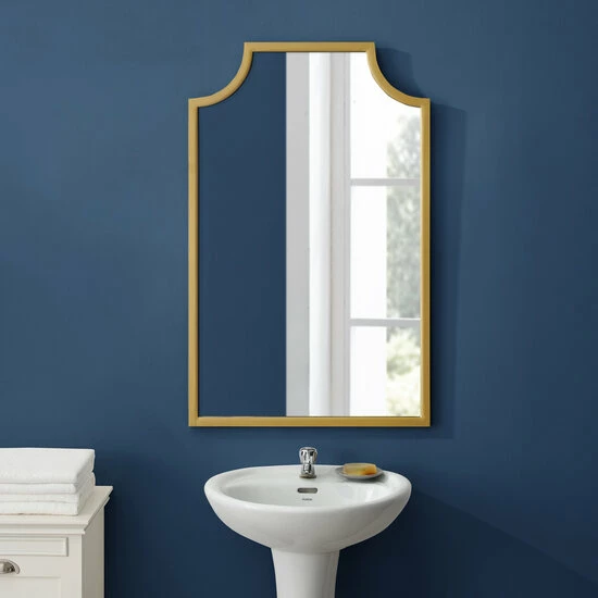Upgrade your home decor with the Aimee Wall Mirror by Crosley Furniture. This modern and stylish mirror features a sturdy steel frame with elegant pagoda-styling that will add visual interest to any room. Perfect for adding depth and dimension to a space, the Aimee Wall Mirror can be paired with a variety of decor styles. Whether as an accent piece in your living room or a functional mirror in your bathroom, this mirror is a versatile addition to your home. Its simple yet fashionable design will effortlessly elevate any room it’s placed in.