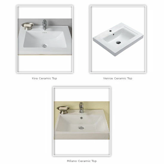 - For Kira and Milano Ceramic Sinks (Sinks Not Included – See Bathroom Vanity Tops)