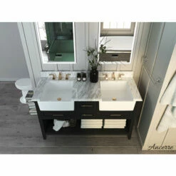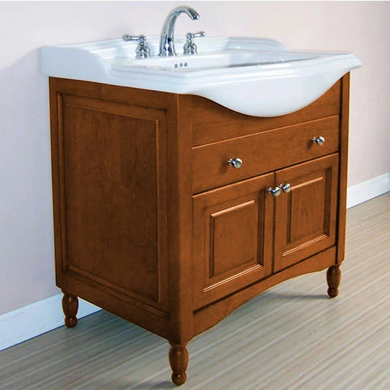 The Windsor 31″ Extra Deep Vanity is 19-1/4″ deep and has a drawer and two cabinet doors for storage. The vanities are made of solid wood and come in White and Light Cherry finishes to enhance any bathroom.