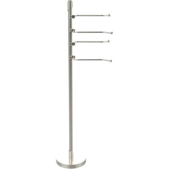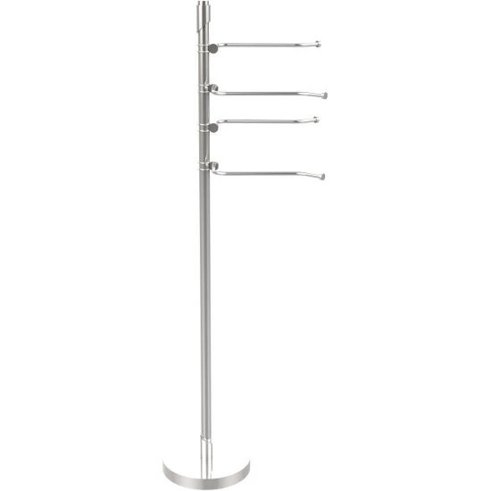 This elegantly designed free standing swing arm towel stand provides a convenient and stylish space to hang your favorite towels. Towel stand has 4 pivoting arms so that you can maximize your space. Large base is weighted to help prevent tipping. Towel stand is made of the finest solid brass materials so that it will not rust or corrode and is provided with one of our designer lifetime finishes.