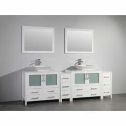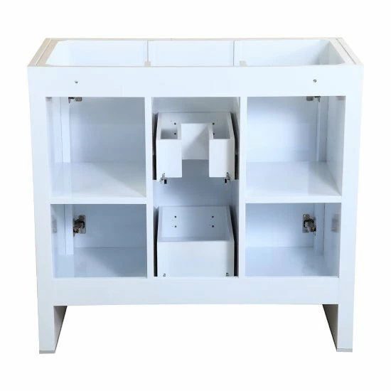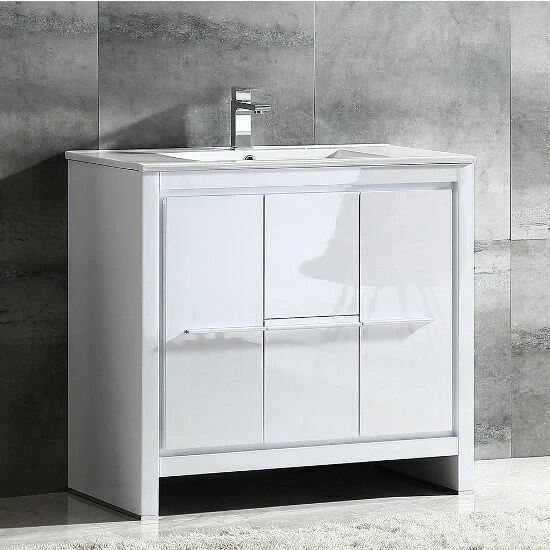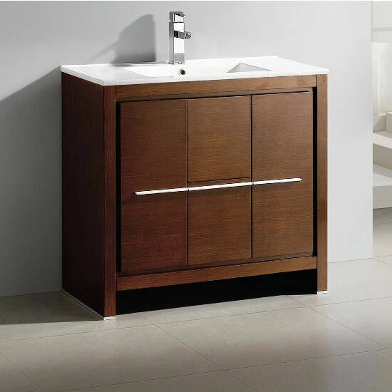 The Fresca Allier 36″ Modern Bathroom Vanity with Mirror can accent the style of your bathroom or powder room. The set includes a Base Cabinet, Countertop/Sink Top, Faucet, Mirror, P-Trap, Pop-Up Drain and Installation Hardware. Available in Wenge Brown or Antique White to blend well with any color scheme. The Fresca 36″ Allier is a sleek, modern free standing vanity with plenty of storage space. Optional side cabinets are available (Sold Separately). Many faucet styles to choose from.