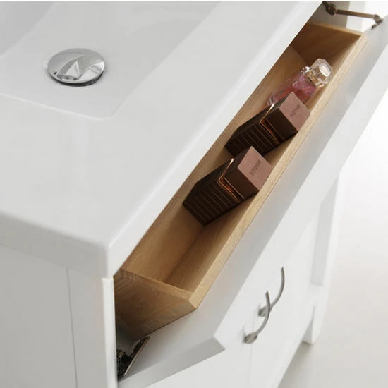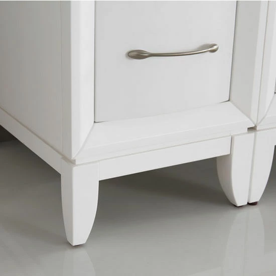 The Fresca Cambridge 30″ Traditional Bathroom Vanity with Mirror renovates your bathroom or powder room with the fresh new traditional look. The set includes a Base Cabinet, Sink Top, Faucet, Mirror, P-Trap, Pop-Up Drain and Installation Hardware. Available in Antique Coffee or Matte White to blend well with any color scheme. The Fresca Cambridge Transitional Bathroom Vanity with Mirror features an integrated white basin and countertop with clean lines and a thick profile. The basin sits atop an elegant vanity with a unique bow front design and beveled frame. With soft closing doors and a flip down tray, the vanity has ample storage space. Satin nickel handles and tapered legs add to its elegance.