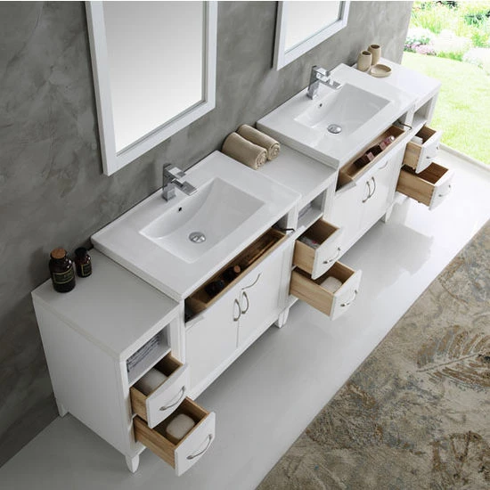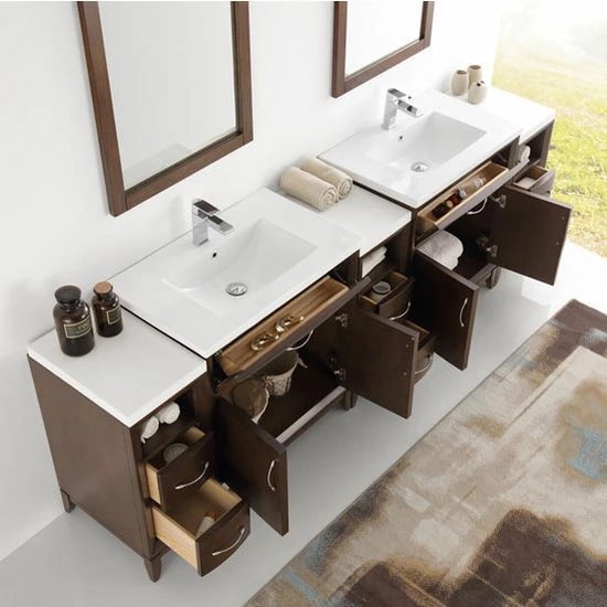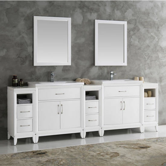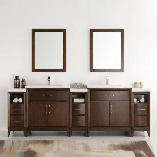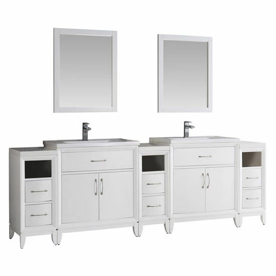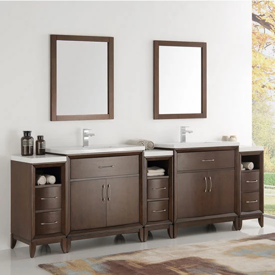 - Fresca Cambridge 96″ Double Sink Traditional Bathroom Vanity with Mirrors