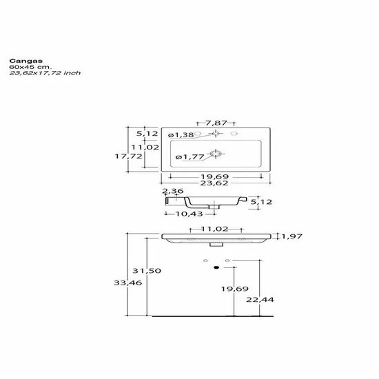 Ceramica Tecla by Nameeks Built In or Wall Mounted Ceramic Washbasin with Overflow from the Cangas Collection. It comes in a White Finish. Constructed of Vitreous China. Ships via UPS/FedEx Ground.