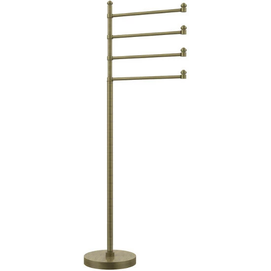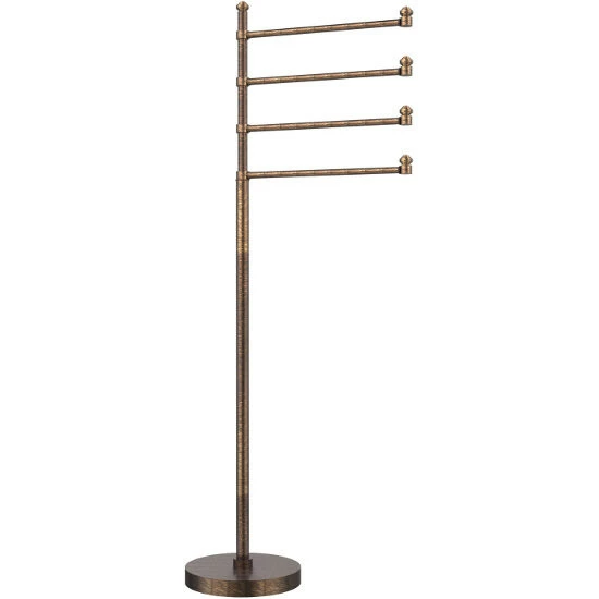 This elegantly designed free standing swing arm towel stand provides a convenient and stylish space to hang your favorite towels. Towel stand has 4 pivoting arms so that you can maximize your space. Large base is weighted to help prevent tipping. Towel stand is made of the finest solid brass materials so that it will not rust or corrode and is provided with one of our designer lifetime finishes.