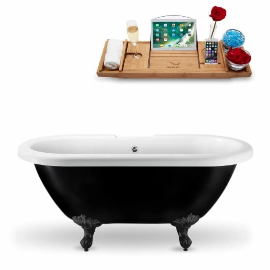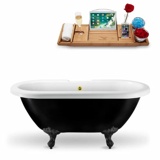 - Streamline 59” or 67” Black or White Exterior Clawfoot Tub, Included External Drain and FREE Natural Bamboo Wood Tray