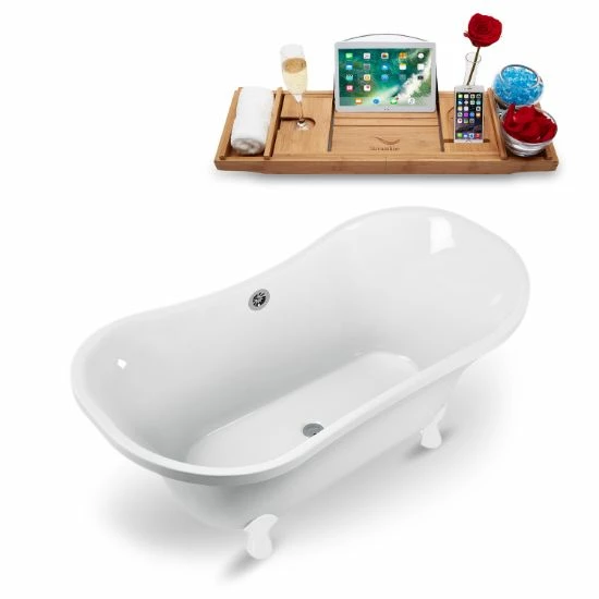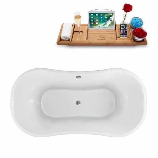 - Streamline 60” Oval Soaking Clawfoot Tub In White, Included Chrome External Drain and FREE Natural Bamboo Wooden Tray