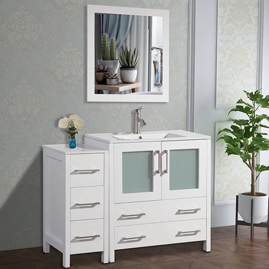 - 42″ W Single Sink Bathroom Vanity Set With White Ceramic Vanity Top