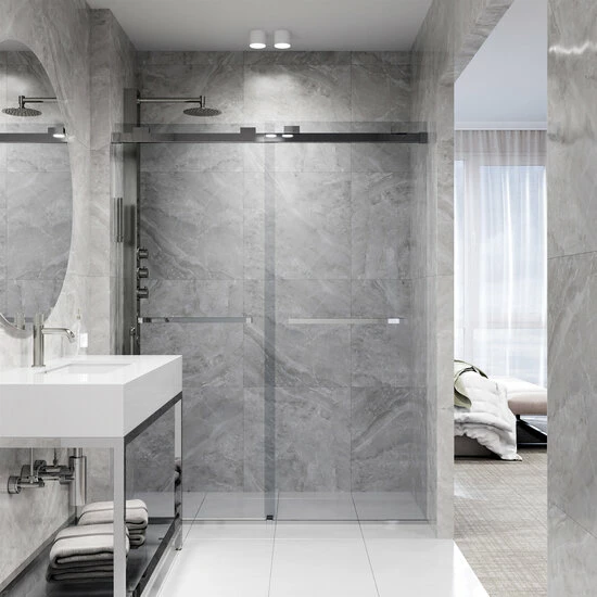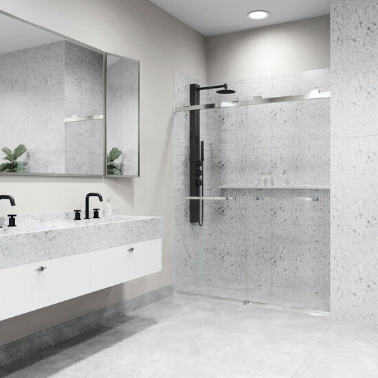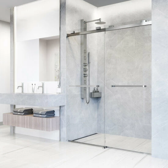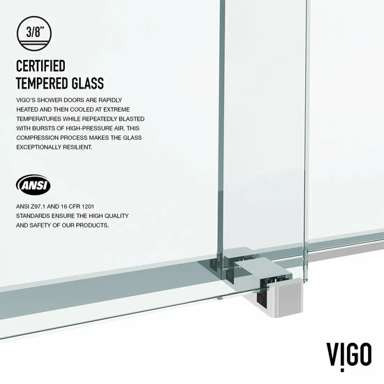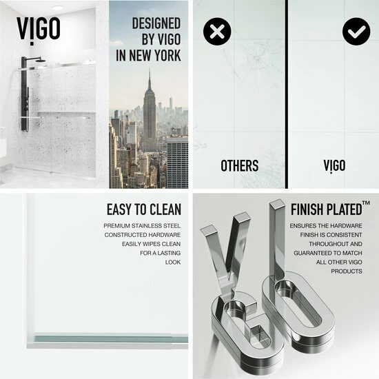 The new Houston frameless shower door from Vigo is designed to complement your bathroom’s traditional modern and minimalist aesthetic. The door may be opened easily and safely thanks to its smooth double-sliding mechanism with a soft closing feature. The full-length seal strips keep your bathroom flooring dry and stop water leaks. Tempered glass panels from Houston are perfect for regular use because they are strong and extremely safe. Simple installation instructions and the provided parts make it feasible for you to do it yourself at home.