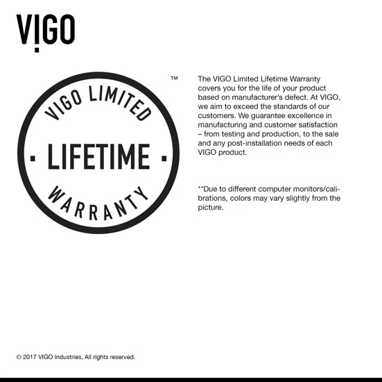 - All Vigo Bathroom Sinks: Limited Lifetime Warranty