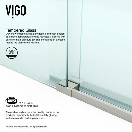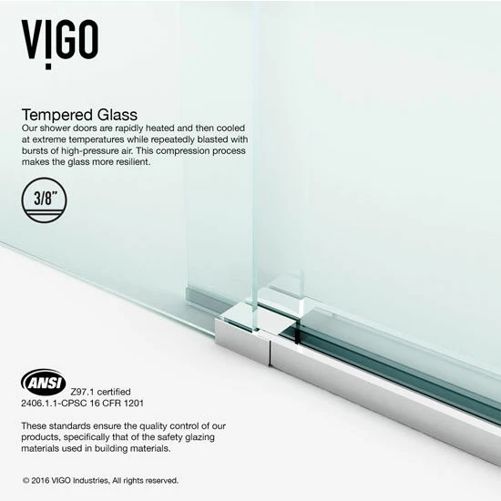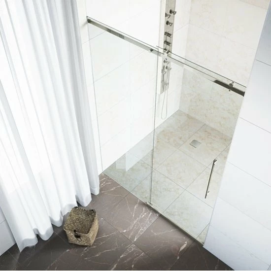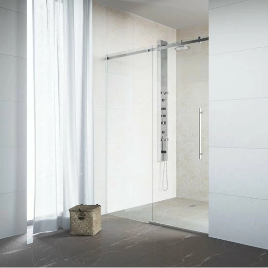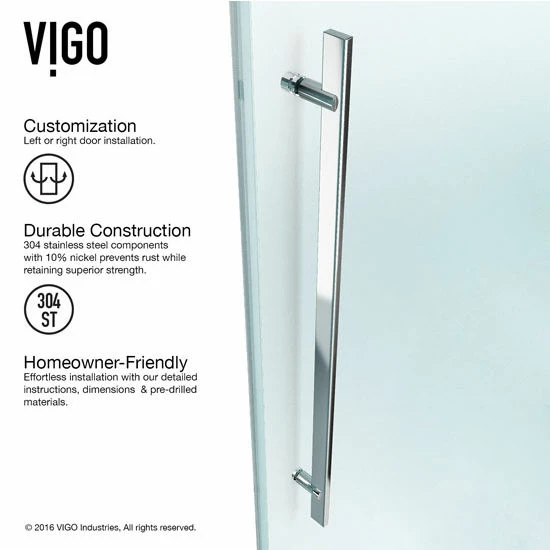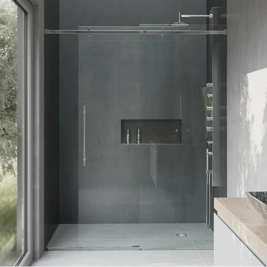 The Luca Shower Door by VIGO is a beautiful sliding shower door with metal mounting and sliding hardware. Available in Chrome or Stainless Steel, the metal hardware is designed to accent the crystal clear glass panels. The Luca Shower Door features clear waterproofing seals which help to keep your bathroom outside your shower clear and dry. The Luca Shower Door is reversible, able to mount left or right handed.