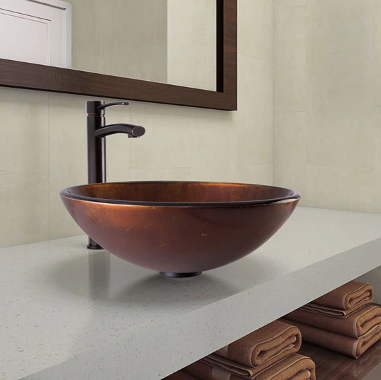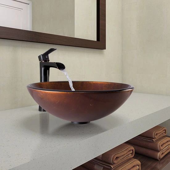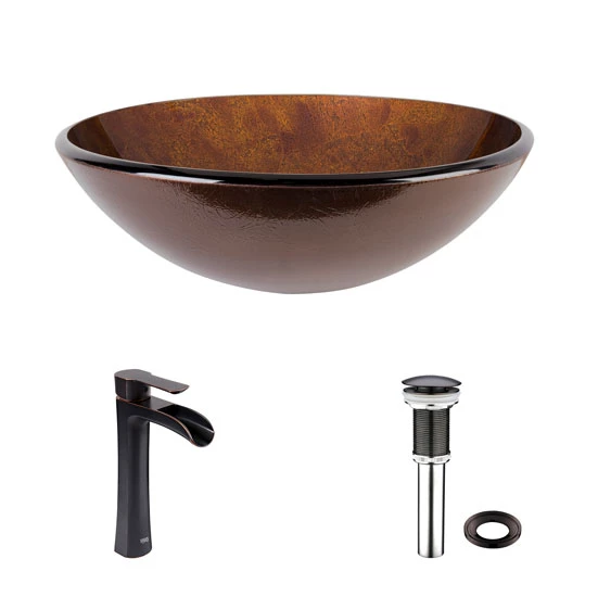 - Vigo Russet Glass Vessel Bathroom Sink Set