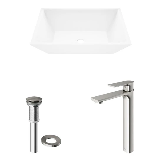 - Vigo Vinca Matte Stone™ Vessel Bathroom Sink Set with Faucet
