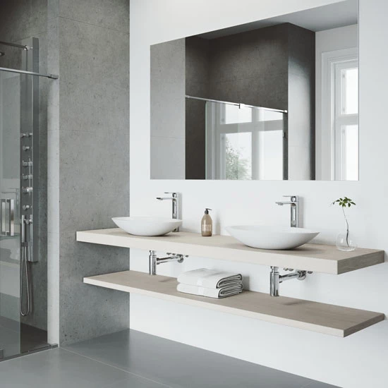 Spacious yet elegant, the VIGO Matte Stone ™ Vessel Bathroom Sink Set, available in Magnolia or Wisteria style, with Faucet in Antique Rubbed Bronze or Matte White finish is a luxurious addition to any modern bathroom. The large rectangular basin is comprised of VIGO’s proprietary Matte Stone ™, a non-porous composite that resists stains, scratches, and impact. This sink pairs perfectly with the 7-layer finished Waterfall Bathroom Faucet, from which the Matte Stone ™ ceramic disc sends a waterfall-like stream of water cascading directly into the sink’s basin. These two pieces, combined with a pop up drain, will make your dream bathroom complete.